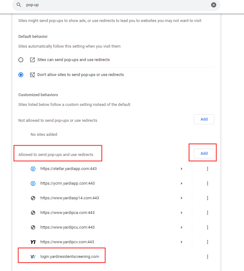 If the web page will not load when you try to review screening results from the applicant screen it most likely has to do with your Pop-Up Blockers. See the snip below to make sure you have everything allowed appropriately.